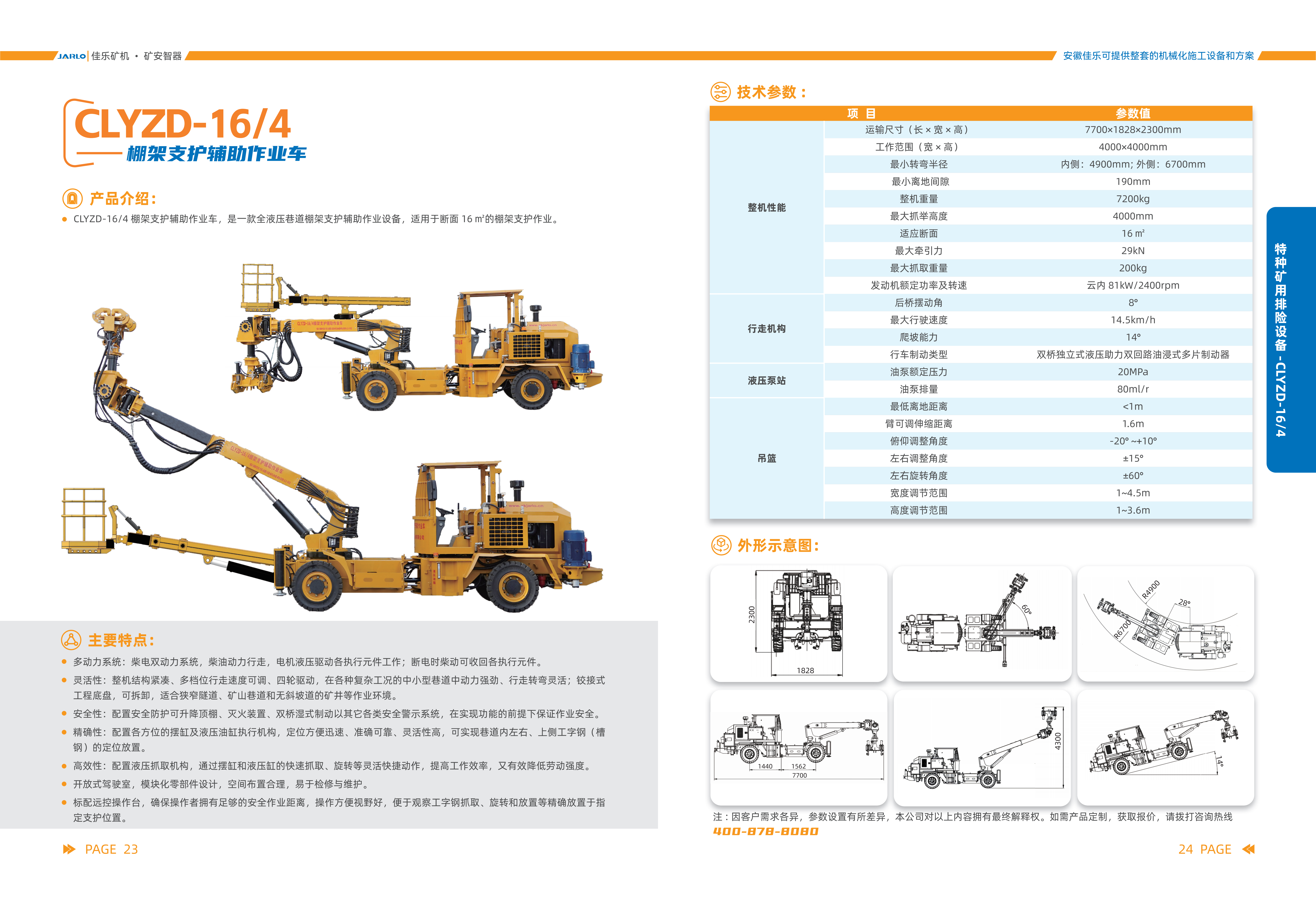 3.安全性:配置安全防護可升降頂棚、滅火裝置、雙橋濕式制動以其它各類安全警示系統(tǒng),在實現(xiàn)功能的前提下保證作業(yè)安全。